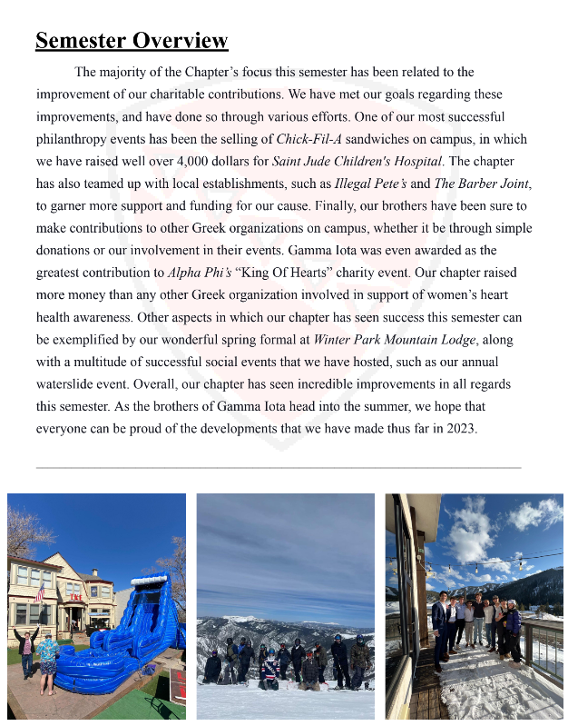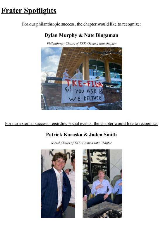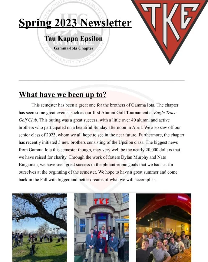 Welcome to the homepage for the Gamma Iota chapter of Tau Kappa Epsilon. Here you can find ways to reach out to us, donate, and keep up to date with our chapter.